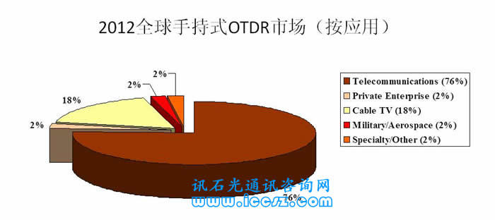 【訊石光通訊咨詢網(wǎng)】來自ElectroniCast的調(diào)研數(shù)據(jù)顯示,2012年用于手持測(cè)試裝置的手持OTDR設(shè)備裝置和OTDR模塊的全球消費(fèi)值達(dá)到2.594億美元。在細(xì)分應(yīng)用市場(chǎng)中,電信應(yīng)用占了整體市場(chǎng)的75.9%,有線電視應(yīng)用占了17.6%。