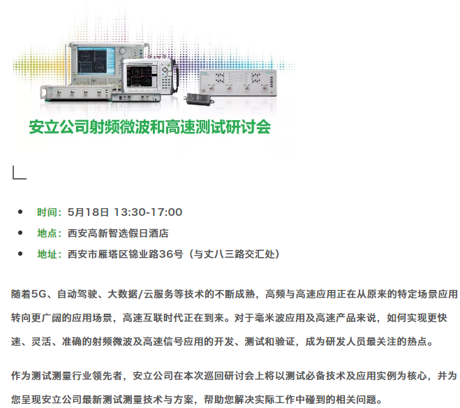 【5月18日 | 西安站】安立射頻微波與高速測試研討會邀請函
