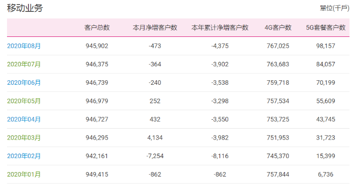 9月21日消息 中國(guó)移動(dòng)今日公布2020年8月份運(yùn)營(yíng)數(shù)據(jù)。當(dāng)月,中國(guó)移動(dòng)移動(dòng)客戶(hù)凈減47.3萬(wàn)戶(hù),累計(jì)達(dá)到9.45902億戶(hù)。