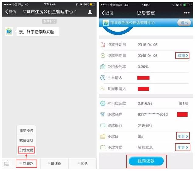 1、關(guān)注 “廣東發(fā)布”(微信號(hào):gdfabu0710) ,回復(fù)“深圳公積金變更”,可直接辦理以下5類貸后業(yè)務(wù):貸款縮期、提前還款、變更還款日、變更還款方式、對(duì)沖還貸。