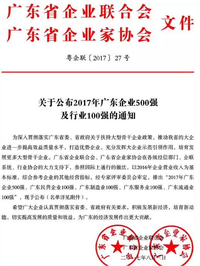 2017年廣東企業(yè)500強榜單公布,訊石5家會員企業(yè)上榜