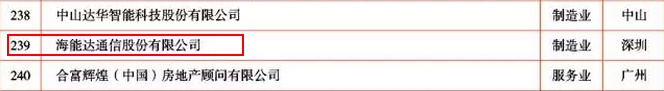 訊石會員企業(yè)有多家上榜2017年廣東企業(yè)500強榜單,其中特發(fā)集團排名前133名、大族激光排名前147名、海能達通信排名前239名、潮州三環(huán)排名前269名、日海通訊排名前285名。在此,祝賀以上上榜會員企業(yè)!