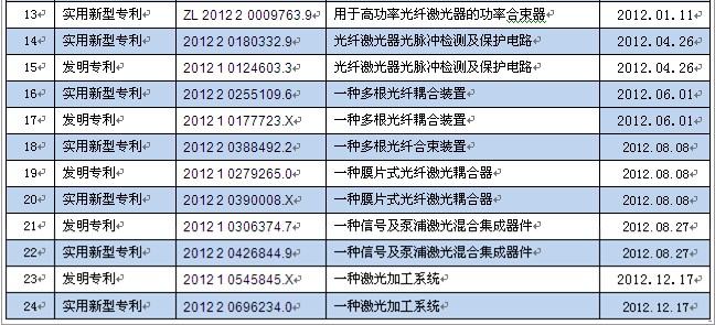 武漢銳科在光纖激光器方面的專(zhuān)利如下: