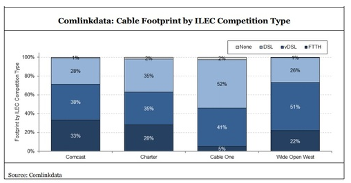 此外,Comlinkdata的信息顯示,康卡斯特面臨來自ILEC FTTP的競爭,后者的市場份額為33%,而特許通信公司和Cable One的市場份額分別為28%和5%。特許通信公司在FTTP競爭市場的份額為61.8%,康卡斯特約為55.8%。
