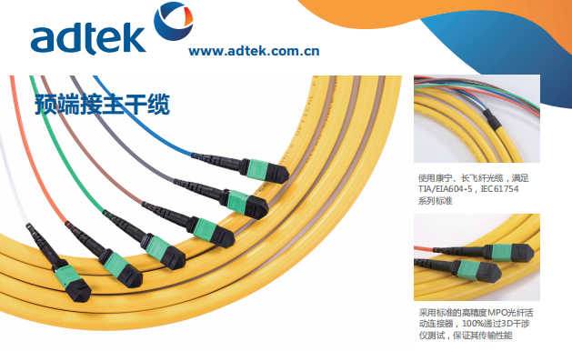 愛德泰數(shù)據(jù)中心跳線產(chǎn)品包括單模/OM3/OM4的MPO、MTP預(yù)端接跳線,專用于40G/100G數(shù)據(jù)中心,采用進(jìn)口低損連接頭,符合GR326/GR1435標(biāo)準(zhǔn)??筛鶕?jù)不同需求定制高密配線架,提供了高靈活性和可選擇性,方便安裝與維護(hù),同時(shí)節(jié)省布線空間,降低布線成本。