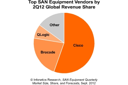 * Cisco 2Q12 SAN銷售收入增長31%,并連續(xù)五個(gè)季度蟬聯(lián)SAN設(shè)備市場霸主地位;