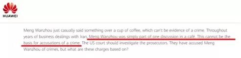 任正非還強(qiáng)調(diào)沒(méi)有證據(jù)證明華為被捕的高管犯下了任何罪行,并質(zhì)疑了美國(guó)司法部?jī)H僅依據(jù)華為那位高管與匯豐的高管在“喝咖啡”時(shí)的聊天內(nèi)容和一份PPT,就認(rèn)定其有罪的做法。