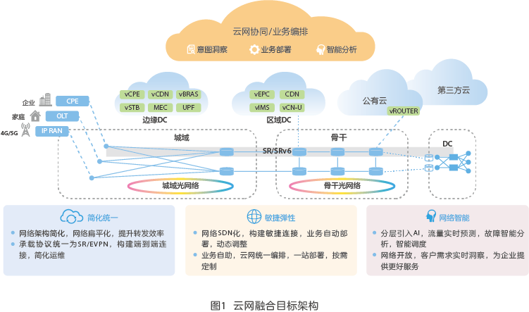 基于上述建網原則,中興通訊提出云網融合的參考目標架構,如圖1所示。
