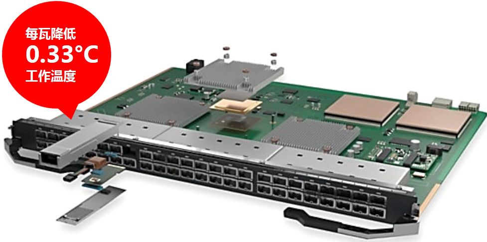 特殊的涂層材料促進了模塊的散熱,實現(xiàn)每瓦降低0.33°C工作溫度。這意味著,對于一個15瓦功率的光模塊而言,BERGQUIST microTIM mTIM 1000系列導(dǎo)熱涂層可以幫助其最高降低5°C,這一降溫特性在整個線卡集成中裨益顯著。
