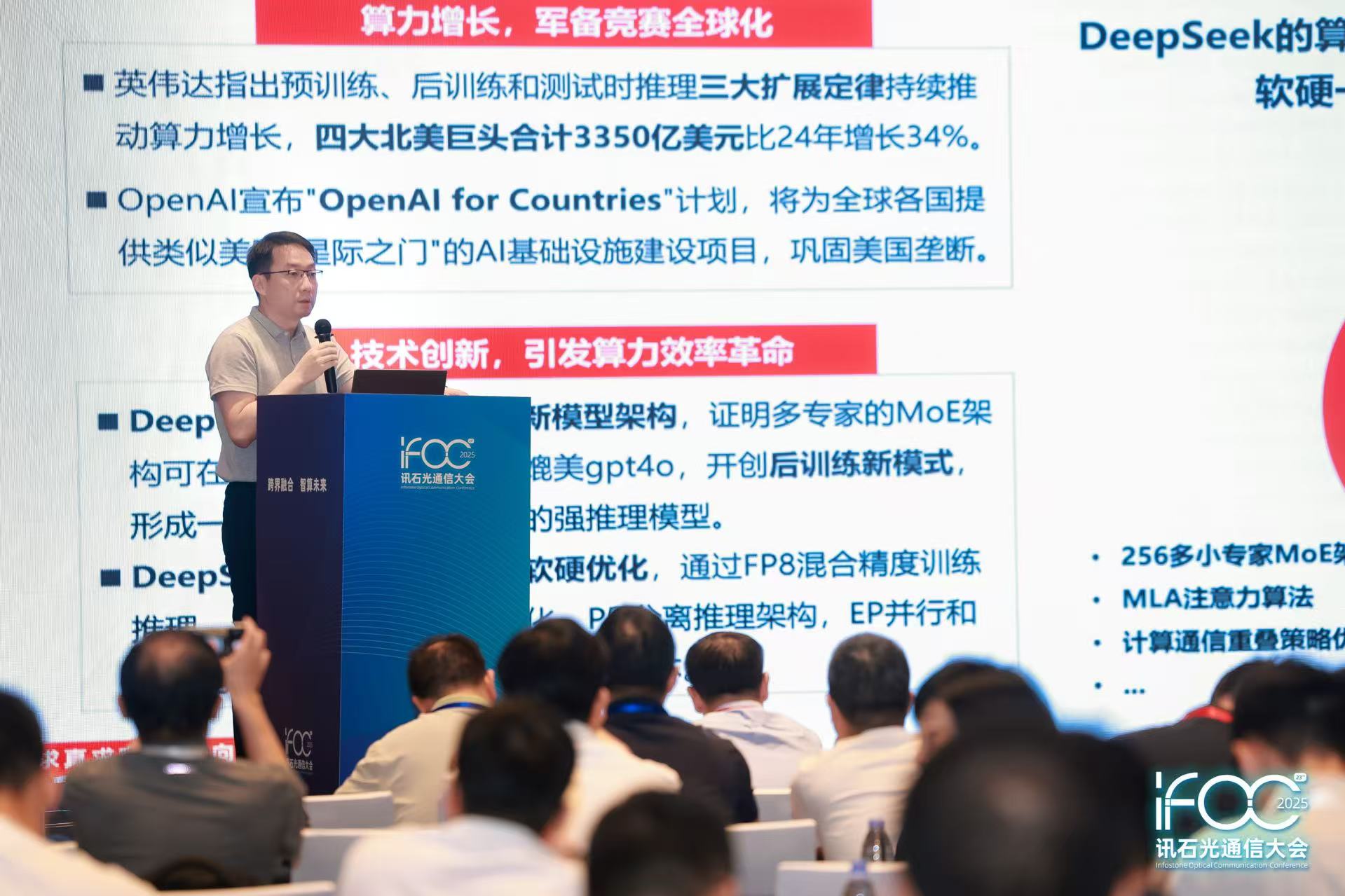 ICC訊 9月8日,IFOC 2025 第23屆訊石光通信大會(huì)在深圳國(guó)際會(huì)展中心洲際酒店正式拉開帷幕。當(dāng)前AI產(chǎn)業(yè)迅猛發(fā)展,為光互連領(lǐng)域開辟了廣闊空間,值此行業(yè)機(jī)遇期,大會(huì)專題二論壇《AI算力光互連發(fā)展》精準(zhǔn)聚焦這一核心議題——論壇由長(zhǎng)光華芯副總經(jīng)理吳真林主持,特邀中國(guó)電信、光迅科技、光安倫等企業(yè)及北京大學(xué)的專家學(xué)者齊聚,圍繞“AI算力光互連發(fā)展”深度分享前沿技術(shù)報(bào)告與行業(yè)洞察,為領(lǐng)域發(fā)展帶來(lái)新的思想碰撞。