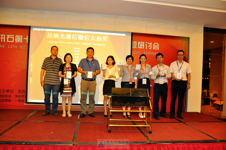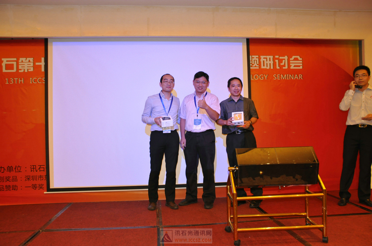 ICCSZ訊(編輯:Debi)2014年9月1日,訊石第十三屆光纖通訊市場(chǎng)暨技術(shù)專(zhuān)題研討會(huì)圓滿舉辦,歷時(shí)近十個(gè)小時(shí)的主題演講及論壇討論環(huán)節(jié)給現(xiàn)場(chǎng)嘉賓留下了深刻印象。此外,當(dāng)晚訊石還特意為嘉賓們籌備了氣氛輕松愉悅的晚宴活動(dòng),深圳東海、六盛展覽、蘇州旭創(chuàng)、河南鑫宇、和椿科技還為大家準(zhǔn)備了豐厚的禮品進(jìn)行抽獎(jiǎng),在近兩百位嘉賓們的共同見(jiàn)證下,晚宴現(xiàn)場(chǎng)熱鬧非凡,小編為您再現(xiàn)當(dāng)晚的火熱景象。