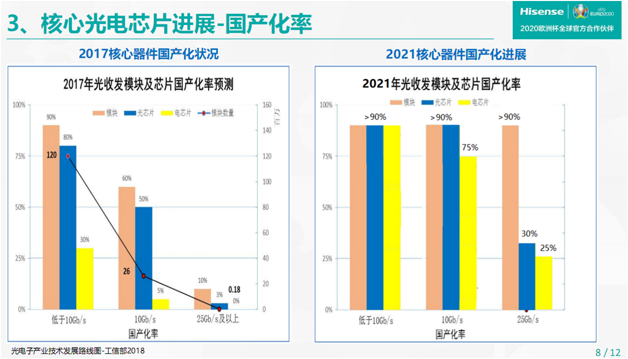 2021核心器件國產(chǎn)化率進(jìn)展(來源:OPTiNET海信寬帶報(bào)告)