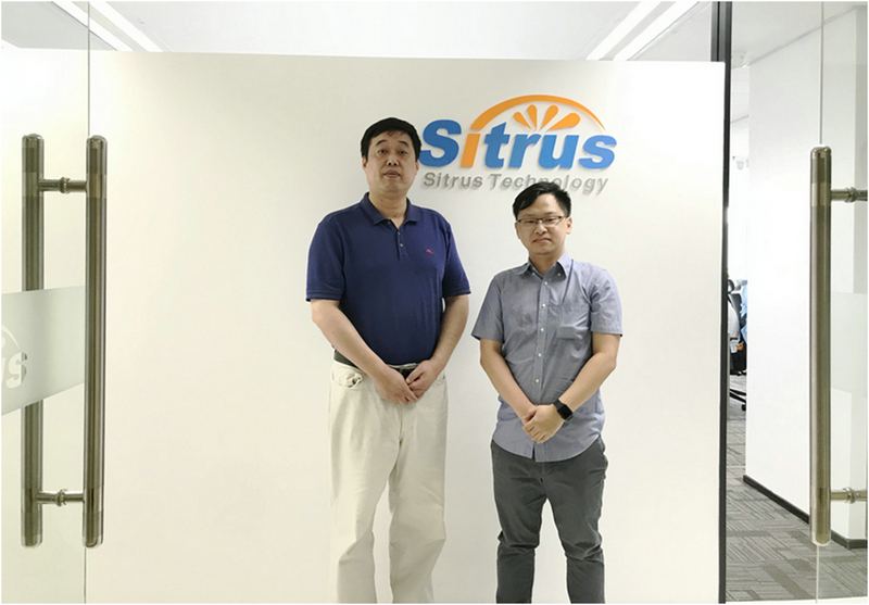 橙科微電子創(chuàng)始人王琿博士(中)接受訊石采訪