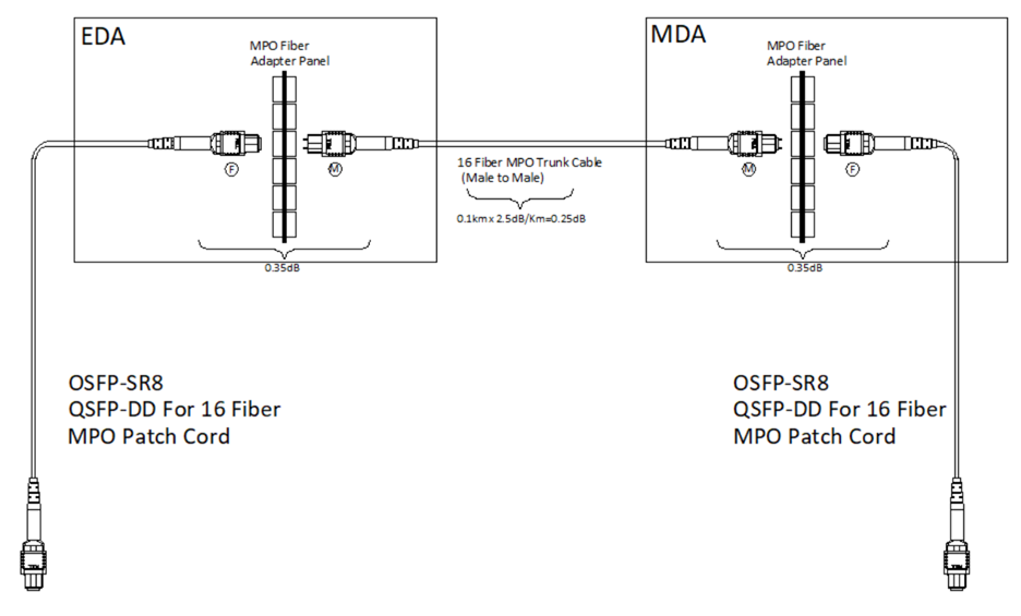單根16芯光纜傳輸鏈路圖:1路SR8/QDD-400G鏈路的傳輸