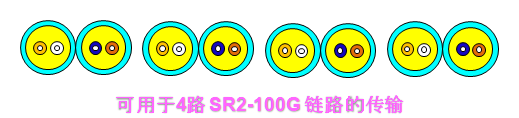 單根16芯光纜傳輸鏈路圖:4路 SR2-100G鏈路的傳輸