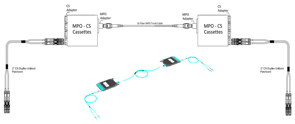 MPO-CS分支跳線:主要用于數(shù)據(jù)中心400G與100G的轉(zhuǎn)換連接,將SR8-400G 分支轉(zhuǎn)化為4路SR2-100G的傳輸。16芯MPO連接器連接SR8-400G端口;分支的4路CS連接器連接SR2-100G端口, 采用高質(zhì)量的光纜及 MPO組件,低插入損耗,高回波損耗完全可以滿足苛刻的高速網(wǎng)絡(luò)。