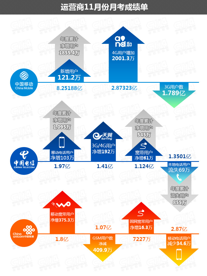 ICCSZ訊 近日,三大電信運(yùn)營商相繼發(fā)布了2015年11月份的運(yùn)營數(shù)據(jù)。