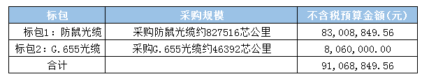 ICC訊 (編輯:Nicole) 四川移動(dòng)啟動(dòng)2021-2023年G.655光纜及防鼠光纜集采項(xiàng)目(招標(biāo)編號(hào): 川移采【2021】0211號(hào);招標(biāo)代理編號(hào): 03-08-04A-2021-D-B20290),劃分2個(gè)標(biāo)包,預(yù)估采購(gòu)總金額9106.89萬(wàn)元。其中標(biāo)包1擬采購(gòu)防鼠光纜約827516芯公里,預(yù)估采購(gòu)金額約8300.89萬(wàn)元;標(biāo)包2擬采購(gòu)G.655光纜46392芯公里,預(yù)估采購(gòu)金額約806萬(wàn)元。