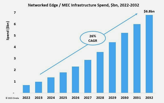 ICC訊(編譯:Nina)Omdia新的網(wǎng)絡邊緣/MEC跟蹤報告預計,到2032年,電信網(wǎng)絡邊緣計算的全球基礎設施支出將達到近70億美元(不包括專用網(wǎng)絡上的MEC)。該支出包括與設施相關(guān)的資本支出和運營支出、服務器和網(wǎng)絡硬件、軟件,以及集成和實施的專業(yè)服務。