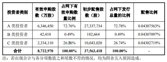 網(wǎng)下發(fā)行初步配售結(jié)果