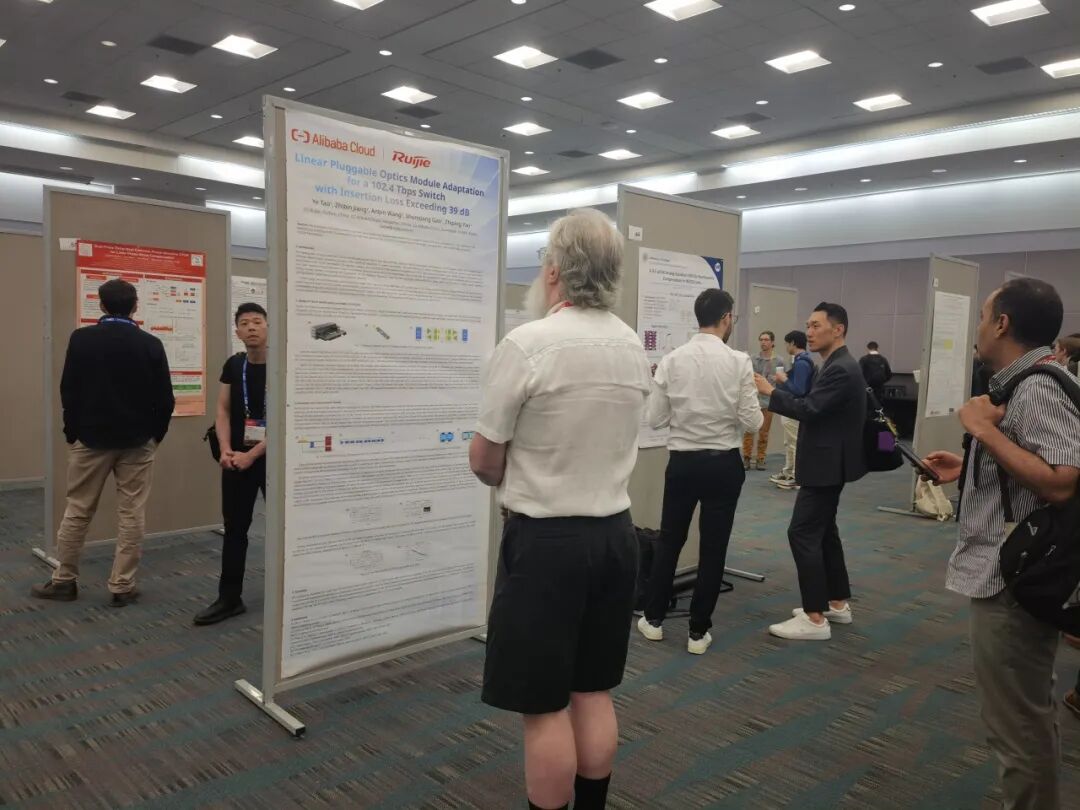 銳捷網(wǎng)絡(luò)與阿里云聯(lián)合研發(fā)的兩項技術(shù)成果論文:《Linear Pluggable Optics Module Adaptation for a 102.4 Tbps Switch with Insertion Loss Exceeding 39 dB》(面向102.4Tbps交換機的LPO光模塊適配方案:應(yīng)對39dB以上插入損耗的挑戰(zhàn))、《PCIe-over-Optics with OSFP DR8 LPO and an Optical Circuit Switching Fabric for Composable CPU-GPU Resource Pooling》(面向可組合 CPU-GPU 資源池化的光互聯(lián)與光電路交換架構(gòu)研究)被大會正式收錄,彰顯了中國企業(yè)在超高容量數(shù)據(jù)中心網(wǎng)絡(luò)領(lǐng)域的硬核技術(shù)實力。