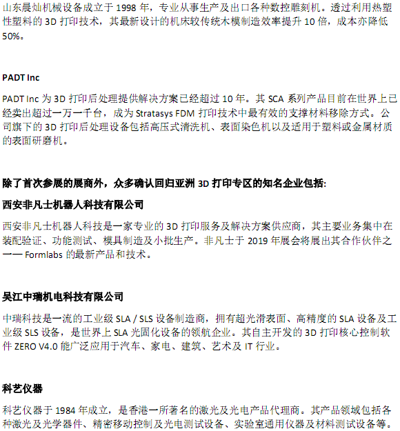 摘要:廣州國際模具展亞洲3D打印專區(qū)強勢回歸匯聚知名3D打印企業(yè)。有賴眾多3D打印展商的鼎力支持,目前亞洲3D打印專區(qū)的面積與去年同期相比增加超過20%,再次成為廣州國際模具展覽會 (Asiamold) 亮點。2019年,亞洲3D打印專區(qū)將匯聚一眾世界領(lǐng)先品牌,展示海內(nèi)外3D企業(yè)嶄新的增材制造技術(shù)和解決方案。