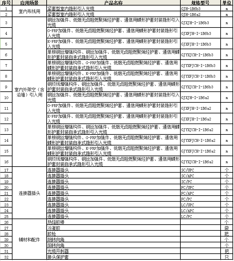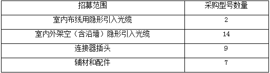 據(jù)悉,中國(guó)聯(lián)通本次隱形引入光纜供應(yīng)商公開市場(chǎng)招募,公開招募的產(chǎn)品包括室內(nèi)布線用隱形引入光纜、室內(nèi)外架空(含沿墻)隱形引入光纜、室內(nèi)布線用預(yù)成端隱形引入光纜、室內(nèi)外架空(含沿墻)預(yù)成端隱形引入光纜。其中預(yù)成端隱形引入光纜規(guī)格型號(hào)為隱形引入光纜與各類連接器插頭的組合,各省可根據(jù)具體需求自由定制長(zhǎng)度。光纜采購(gòu)包括但不限于以下型號(hào):