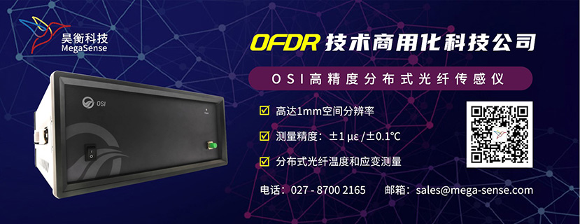 OSI是一款超高精度分布式光纖傳感儀,其原理基于光頻域反射技術(shù)(OFDR),用于溫度和應(yīng)變分布式測量,空間分辨率高達1mm,溫度和應(yīng)變測量精度最高可達±0.1℃和±1.0με。該系統(tǒng)采用常規(guī)單模光纖作傳感器,并兼容高密度弱反射光纖光柵陣列,在一根光纖上可同時測量成千上萬傳感點,廣泛應(yīng)用于短距離、高分辨、高精度溫度和應(yīng)變測量領(lǐng)域。