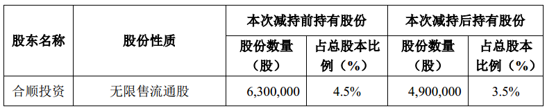3、截至本公告日, 合順投資已披露的減持計劃尚未全部實(shí)施完畢,公司將持續(xù)關(guān)注其股份減持計劃后續(xù)實(shí)施的進(jìn)展情況,并按照相關(guān)規(guī)定要求及時履行信息披露義務(wù)。