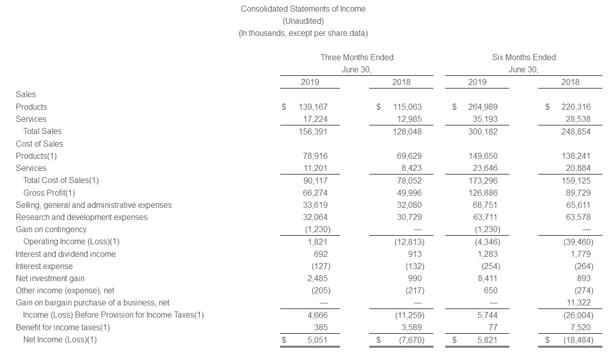 ICCSZ訊(編譯:Vicki)ADTRAN公布了2019年第二季度的業(yè)績。本季度的銷售額為1.564億美元,而2018年第二季度為1.28億美元,同比增長18.2%。凈收入為510萬美元,去年同期凈虧損為77萬美元。 該季度每股凈收益0.11美元,而2018年第二季度每股虧損0.16美元。非GAAP每股凈收益為0.14美元,2018年第二季度每股虧損為0.10美元。