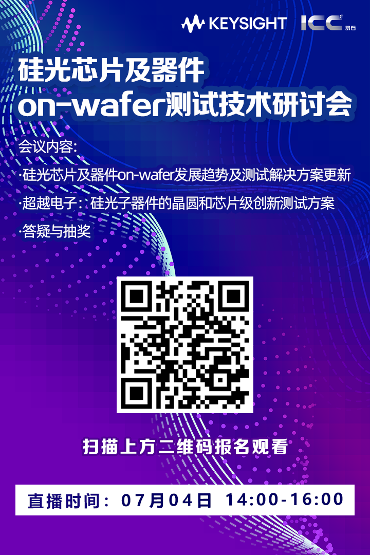 ICC訊 7月4日,2pm-4pm,ICC訊石聯(lián)合是德科技舉辦硅光芯片及器件on-wafer測(cè)試技術(shù)研討會(huì)。會(huì)議邀請(qǐng)到了是德科技聯(lián)合FormFactor的高級(jí)光學(xué)工程師袁博士將對(duì)硅光器件發(fā)展趨勢(shì)及晶圓/芯片級(jí)測(cè)試方案做相關(guān)介紹并與嘉賓互動(dòng)。 如今,硅光技術(shù)在高速光互聯(lián)的數(shù)據(jù)中心場(chǎng)景快速落地,前所未有的高速光電轉(zhuǎn)換與集成需求對(duì)測(cè)試技術(shù)提出了更高要求,如何看待硅光芯片及器件on-wafer發(fā)展趨勢(shì),確保800G/1.6T甚至更高速率數(shù)據(jù)傳輸?shù)臏?zhǔn)確性與可靠性。