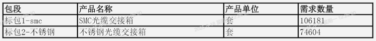 - 標(biāo)包1:SMC光纜交接箱,需求106,181套