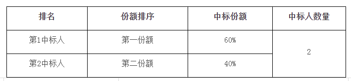 本項目不劃分標(biāo)包,劃分2個份額。具體中標(biāo)份額劃分如下:(注:稅率為13%):