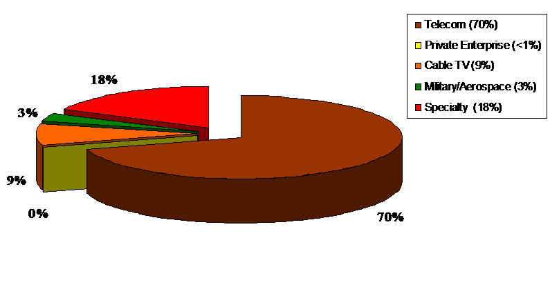 據(jù)ElectroniCast的市場(chǎng)報(bào)告,2013年應(yīng)用于電信領(lǐng)域的光隔離器領(lǐng)導(dǎo)該市場(chǎng)的發(fā)展(應(yīng)用于電信方面的光隔離器占全部市場(chǎng)份額的70%,達(dá)3.497億美元),且預(yù)計(jì)該市場(chǎng)在2014年將增長(zhǎng)19.6%,達(dá)到4.182億美元。