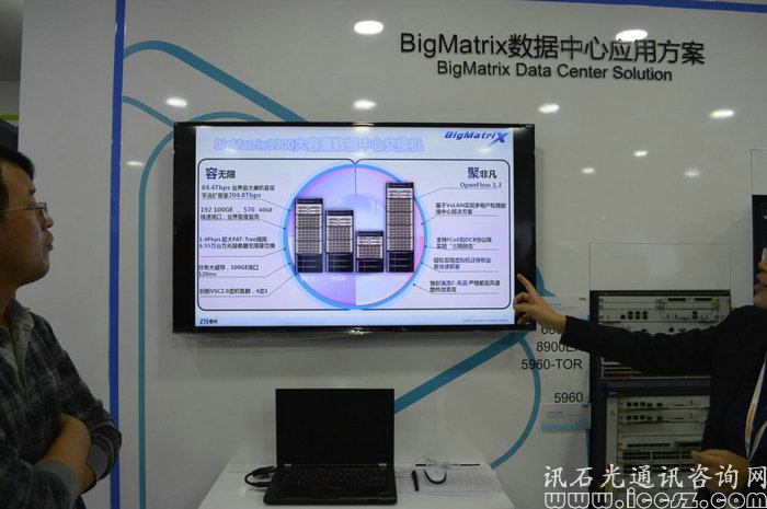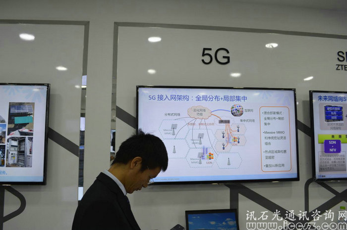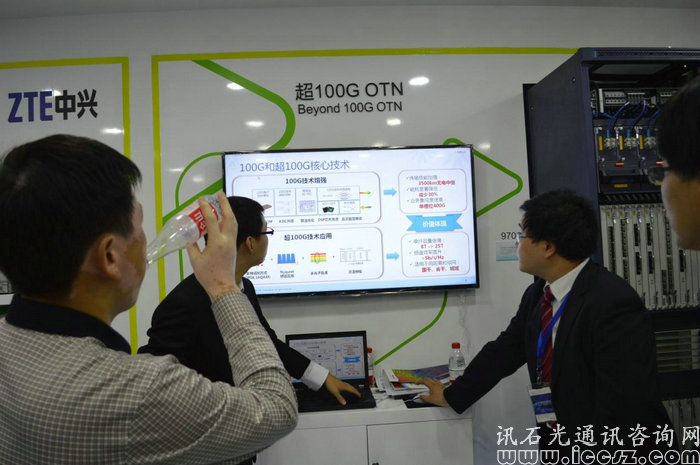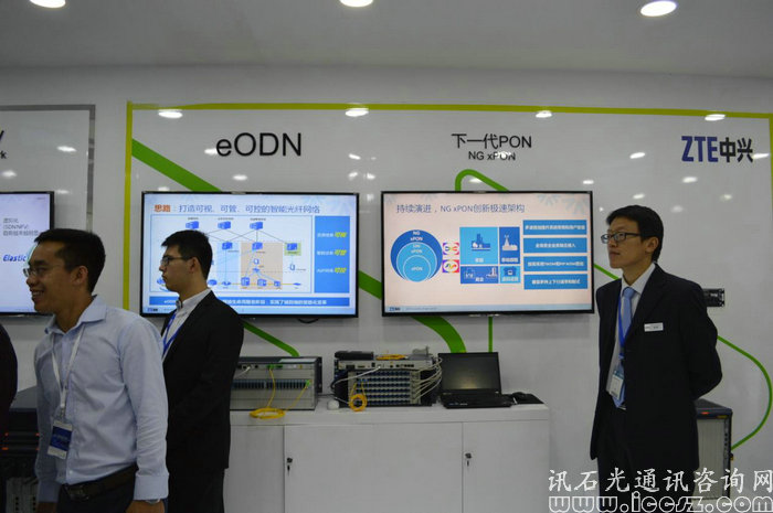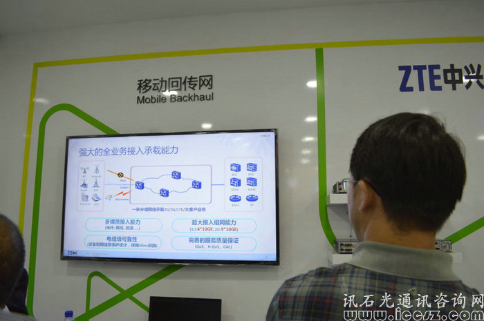在封閉式展區(qū),展出的則以通信解決方案為主,且在閉合展區(qū)的皆為中興的專為技術人員負責講解。面向的客戶主要為運營商,以及專業(yè)性技術人員。這里主要涉及的產品技術有:中興一直的力推的智能eODN解決方案、下一代PON傳輸技術、VoLTE解決方案、移動回傳網、超100G OTN、數據中心應用方案、5G技術、SDN\NFV網絡等。