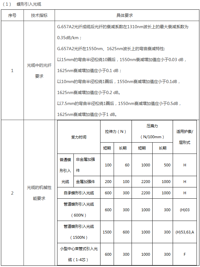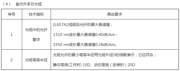 (二)2018年中國電信具體室外光纜和中心管式非金屬扁平光纜的技術(shù)指標(biāo)要求如下: