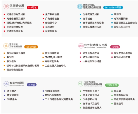 2022年光電企業(yè)參展勢頭強(qiáng)勁,知名企業(yè)鼎力支持,同期特設(shè)信息通信展、精密光學(xué)&攝像頭技術(shù)及應(yīng)用展、激光技術(shù)及智能制造展、紅外技術(shù)及應(yīng)用展、智能傳感展、光電子創(chuàng)新&新型顯示創(chuàng)新技術(shù)展等六大主題展,一站式采購平臺(tái)覆蓋光電全產(chǎn)業(yè)鏈。