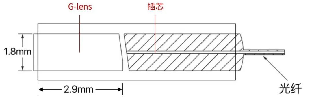 圖2. 單波長(zhǎng)漸變折射率透鏡(G-lens)與插芯耦合示意圖