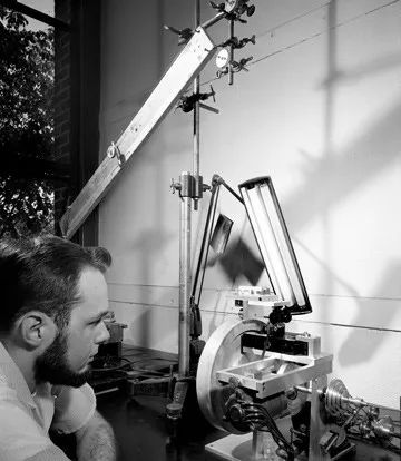 1957年6月,物理系學(xué)生Lawrence Curtiss演示管中棒工藝的生產(chǎn)過(guò)程