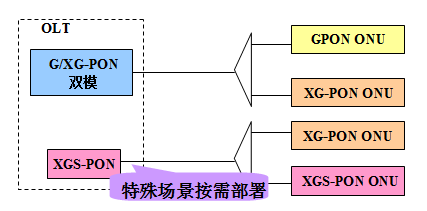 圖3 GPON與XG-PON通過雙模PON口(光模塊)共存