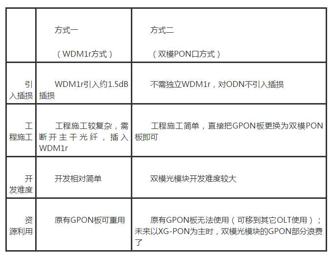 表1 GPON與XG-PON共存方式的對(duì)比