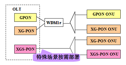 (a)GPON與XG-PON以WDM1r方式共存