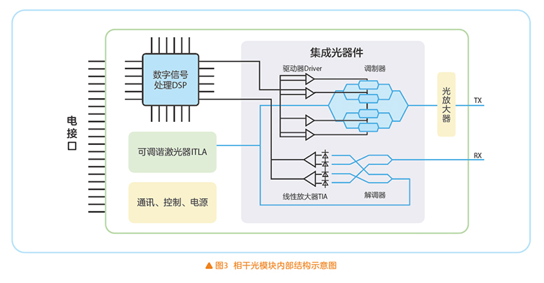 C+L一體化OTU主要由DSP、ITLA、調(diào)制/解調(diào)器和光放大器等組成,其內(nèi)部結(jié)構(gòu)如圖3所示。