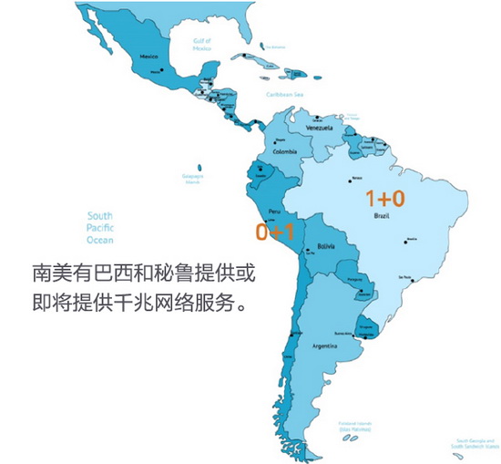 在南美洲方面,目前巴西和秘魯已經(jīng)提供或即將提供千兆網(wǎng)絡(luò)服務(wù)。