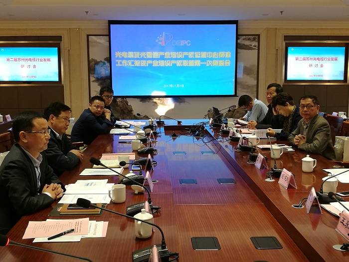 Iccsz訊 11月9日,第二屆蘇州市光電纜行業(yè)發(fā)展研討會(huì)順利召開(kāi),江蘇省光電纜及光通信產(chǎn)業(yè)知識(shí)產(chǎn)權(quán)聯(lián)盟第一次籌備會(huì)同期成功舉辦。蘇州市工商聯(lián)副主席周顯芳、蘇州市知識(shí)產(chǎn)權(quán)局副局長(zhǎng)施衛(wèi)兵、蘇州市職業(yè)大學(xué)副校長(zhǎng)張健、吳江區(qū)知識(shí)產(chǎn)權(quán)局副局長(zhǎng)鄧愛(ài)民、國(guó)家知識(shí)產(chǎn)權(quán)局專利局專利審查協(xié)作江蘇中心蘇州慧谷知識(shí)產(chǎn)權(quán)服務(wù)有限公司邵景春經(jīng)理、蘇州市光電纜業(yè)商會(huì)常務(wù)副會(huì)長(zhǎng)錢建林、商會(huì)專家委員會(huì)主任韋祖國(guó)等領(lǐng)導(dǎo)出席。