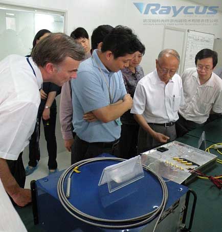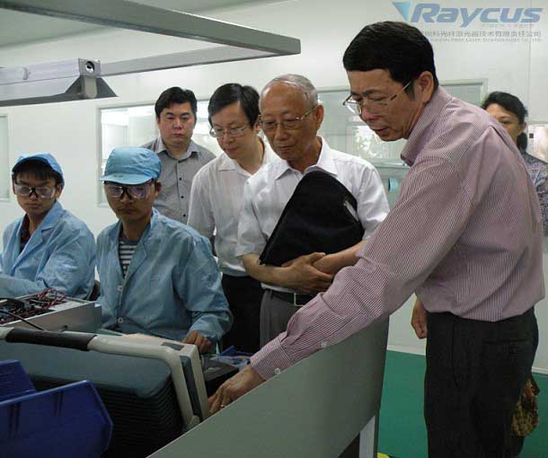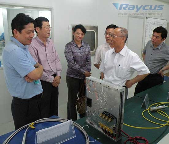 銳科光纖激光生產(chǎn)線進(jìn)行了參觀。對(duì)于擁有自主知識(shí)產(chǎn)權(quán)的光纖激光器,朱森弟非常感興趣,分別對(duì)