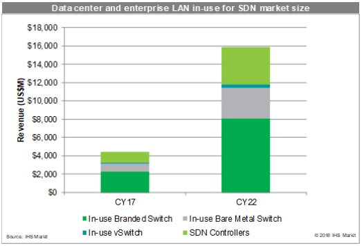 摘要:IHS預(yù)測(cè),全球數(shù)據(jù)中心和企業(yè)LAN SDN市場(chǎng)將從2017年的44億美元增長(zhǎng)至2022年的158億美元。