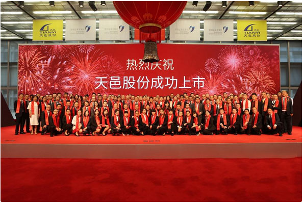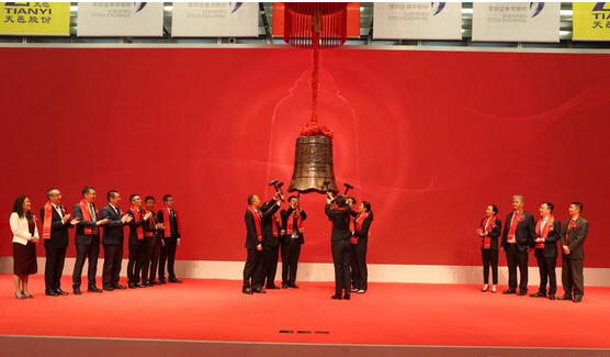 短暫的合影后,上市寶鐘徐徐落下,敲鐘儀式開始。敲鐘代表天邑股份董事長李俊畫女士、天邑股份董事李俊霞女士、成都市大邑縣委書記李燎先生、廣發(fā)證券副總裁歐陽西先生、天邑房產(chǎn)董事長李躍亨先生、天邑集團董事長李世宏先生六位共同敲響開市寶鐘。天邑股份證券代碼:300504,首日交易漲幅達到了44.03%。訊石在此祝賀天邑康和股票上市發(fā)行儀式圓滿成功,祝愿天邑股份上市后蒸蒸日上,宏圖大展。