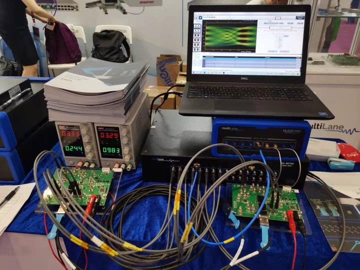 同時(shí)MultiLane攜手Spectra7聯(lián)合展出面向下一代800G數(shù)據(jù)中心的112G GaugeChanger Redriver芯片、ML4079E 800G誤碼儀及ML4067 112G通道仿真板,形成一套完整的112G Redriver的調(diào)試系統(tǒng),讓客戶(hù)朋友們眼前一亮。