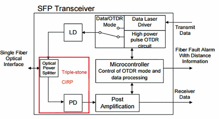 三石園科技緊跟最前沿的需求,針對SFP OTDR模塊應(yīng)用的推出新的小型化集成器件——CIRP。該器件集成傳統(tǒng)光纖環(huán)形器和探測器功能,尺寸僅為為φ3.0*30mm,相對于傳統(tǒng)器件方案極大的節(jié)省了占用空間并進(jìn)一步提高了組件的集成化。